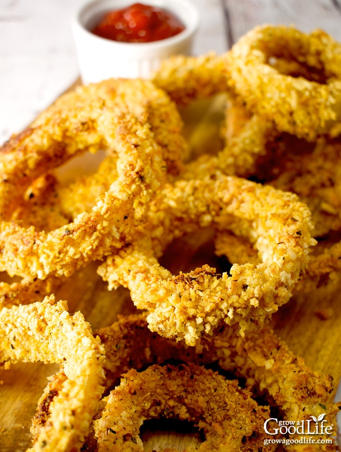 Large onions tend to have thick rings that hold up to being breaded and baked. One sizable 10 to 12-ounce onion will provide a generous serving of onion rings for two people.